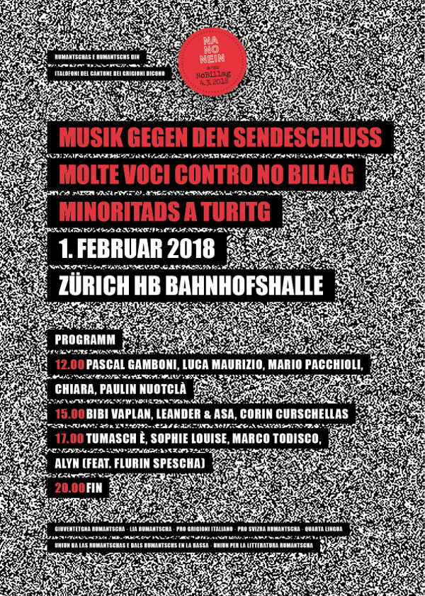 Acziun NA a «No Billag» il prim da favrer en la staziun principala da Turitg! La PSR è da la partida